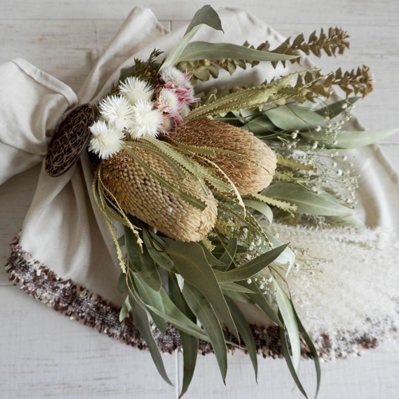 MATERIAL:ドライフラワー(バンクシア、グレッグソニア?ナ、セルリア、エバーラスティング、ススキ、パラノムスなど他)