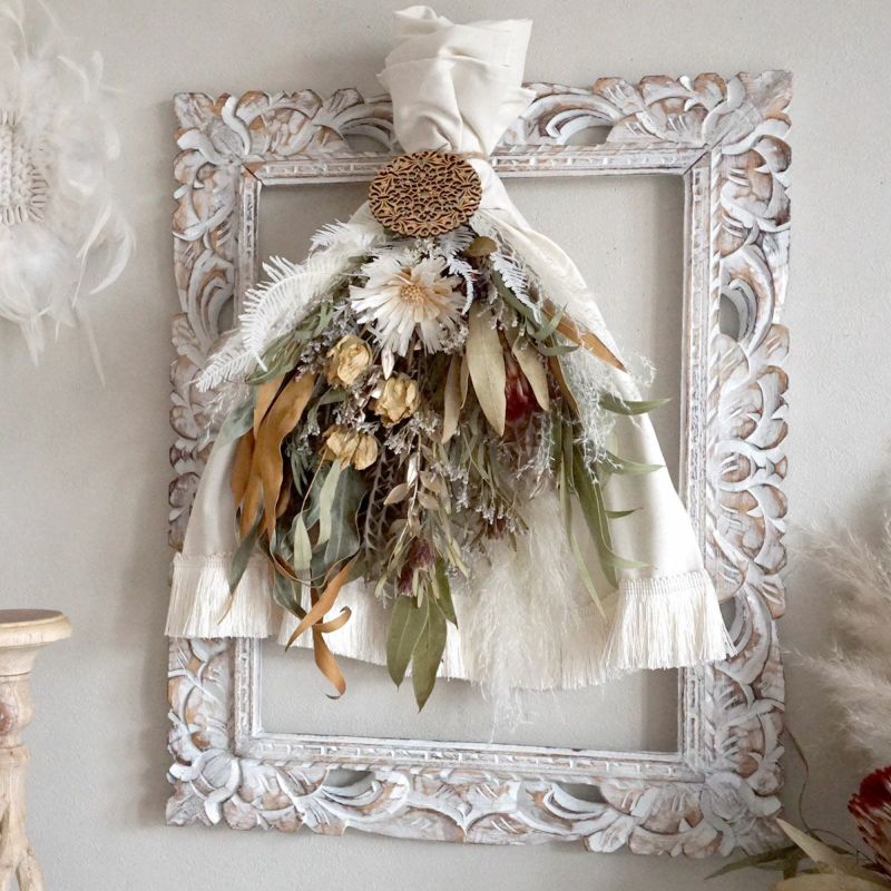 【BOHO DESIGN】リペンスロゼッタやバラを使ったボーホースタイルのドライフラワースワッグ・花束<ボーホーボン>