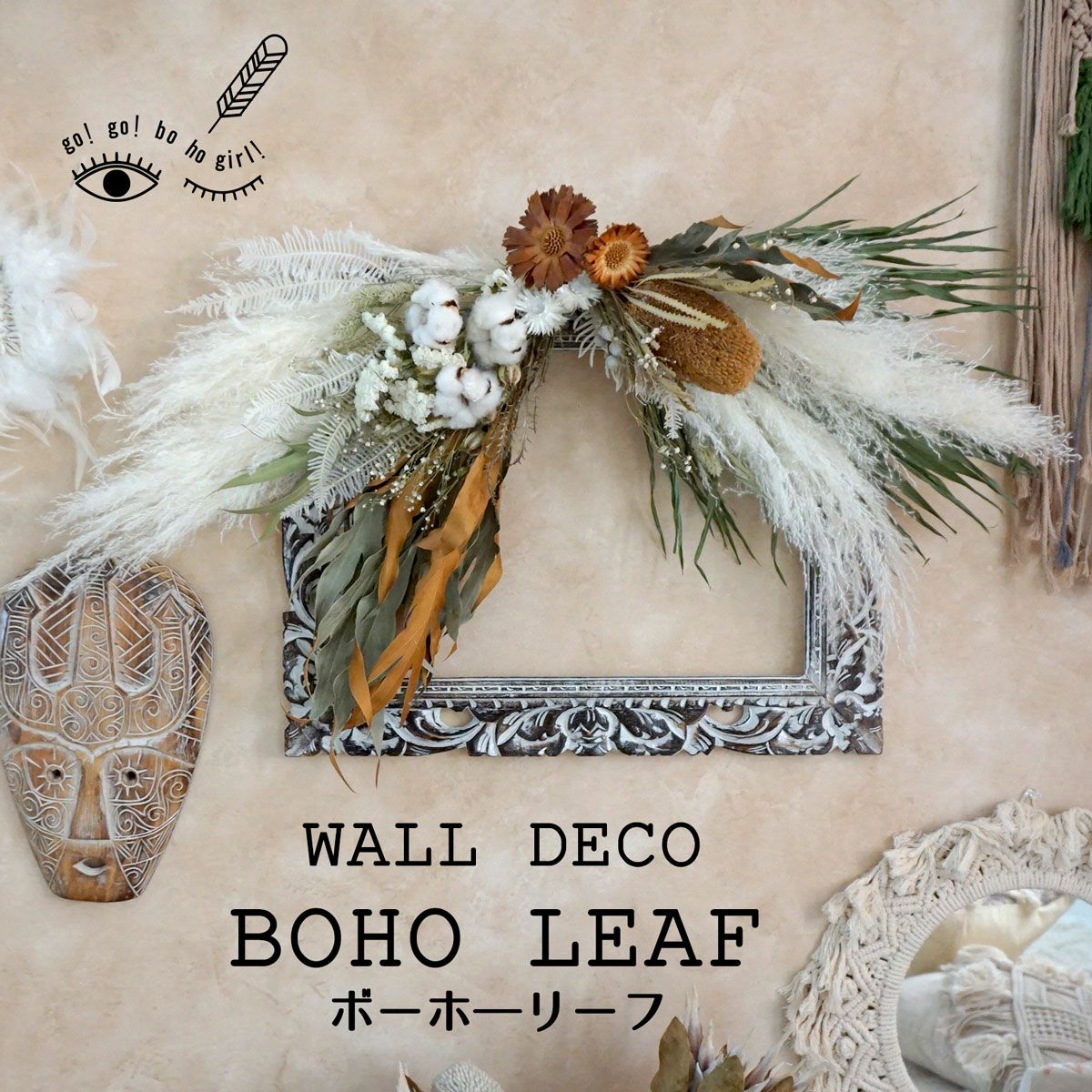 他の画像を見る 【BOHO DESIGN】パームフラワーやパンパスグラスを使用したボーホースタイルのドライフラワーリース<ボエーム> 販売価格 ¥ 11,000 税込 パームフラワーヤパンパスグラス、コットンなどを使用したドライフラワーリースです。ボヘミアンな雰囲気はボーホースタイルのお部屋にぴったり!ギフトや開店祝いなどにもおすすめです。 詳細を見る お気に入りに登録する