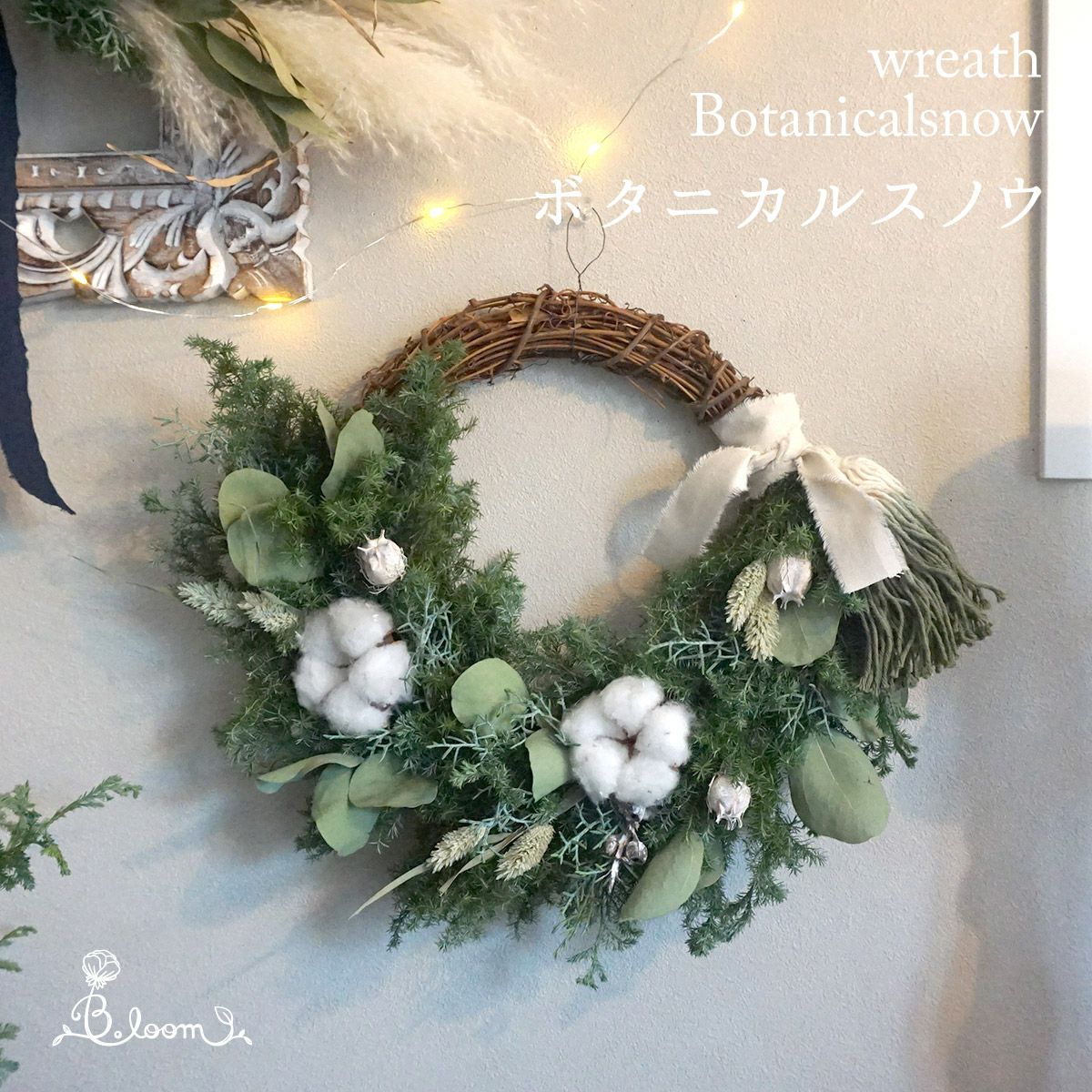 他の画像を見る 冬のインテリアにおすすめ】ユーカリやコットン、ヒムロスギを使ったボタニカルリース<ボタニカルスノウ> 販売価格 ¥ 11,000 税込 プレゼントやギフトにもおすすめ!自然な雰囲気がお好きな方にぴったり。ボタニカルインテリアに合うユーカリやコットン、ヒムロスギを使ったハーフリースです。 詳細を見る お気に入りに登録する