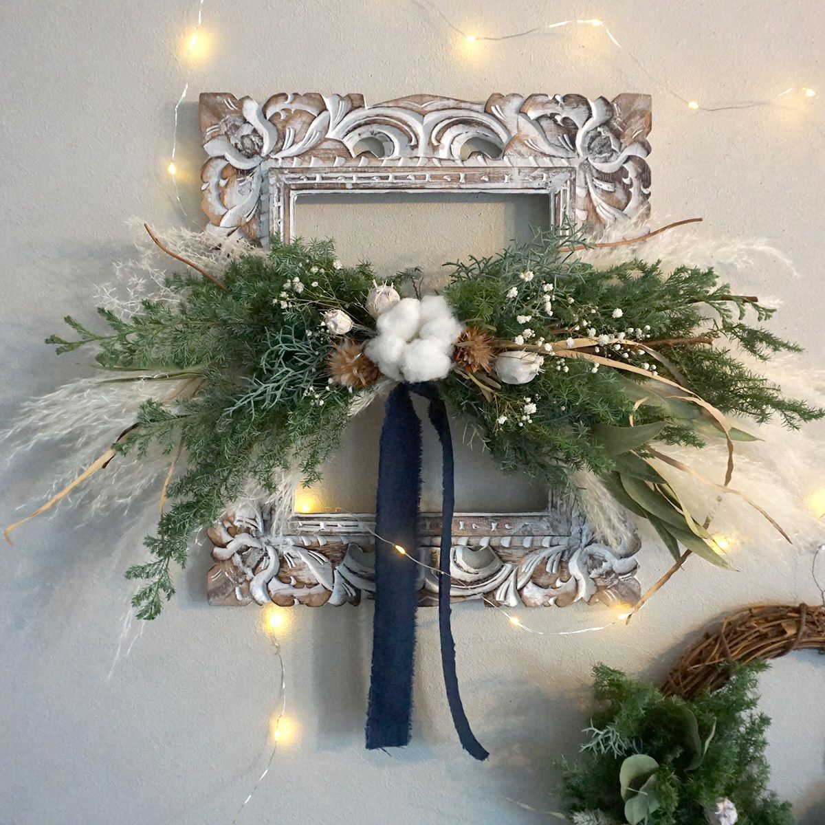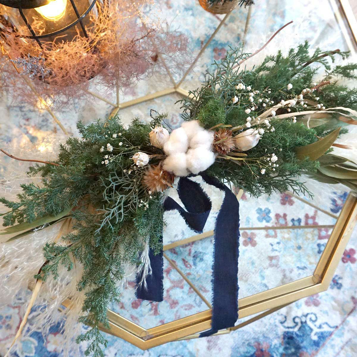 他の画像を見る 【クリスマスや冬のインテリアにおすすめ】ヒムロスギやコットンを使ったお手軽サイズのウォールデコレーション・壁飾り<チャーチ> 販売価格 ¥ 11,000 税込 店内装飾、インテリアにおすすめなドライフラワー壁飾り。コットンとヒムロスギ、カスミソウなどを使ってシンプルですっきりとした雰囲気に仕上げました。クリスマスのインテリアにおすすめです。 詳細を見る お気に入りに登録する