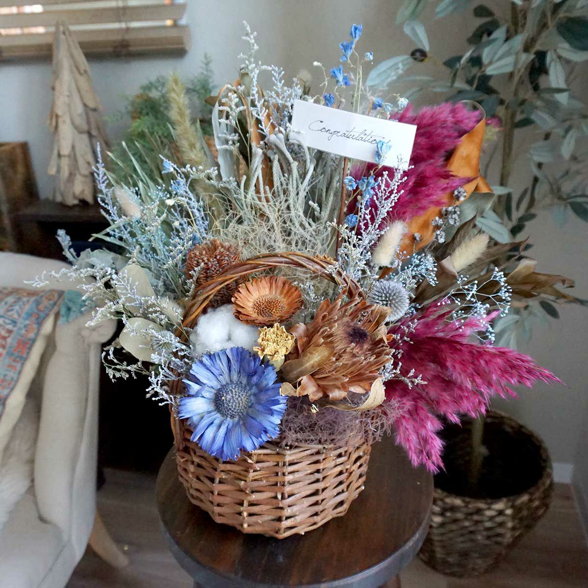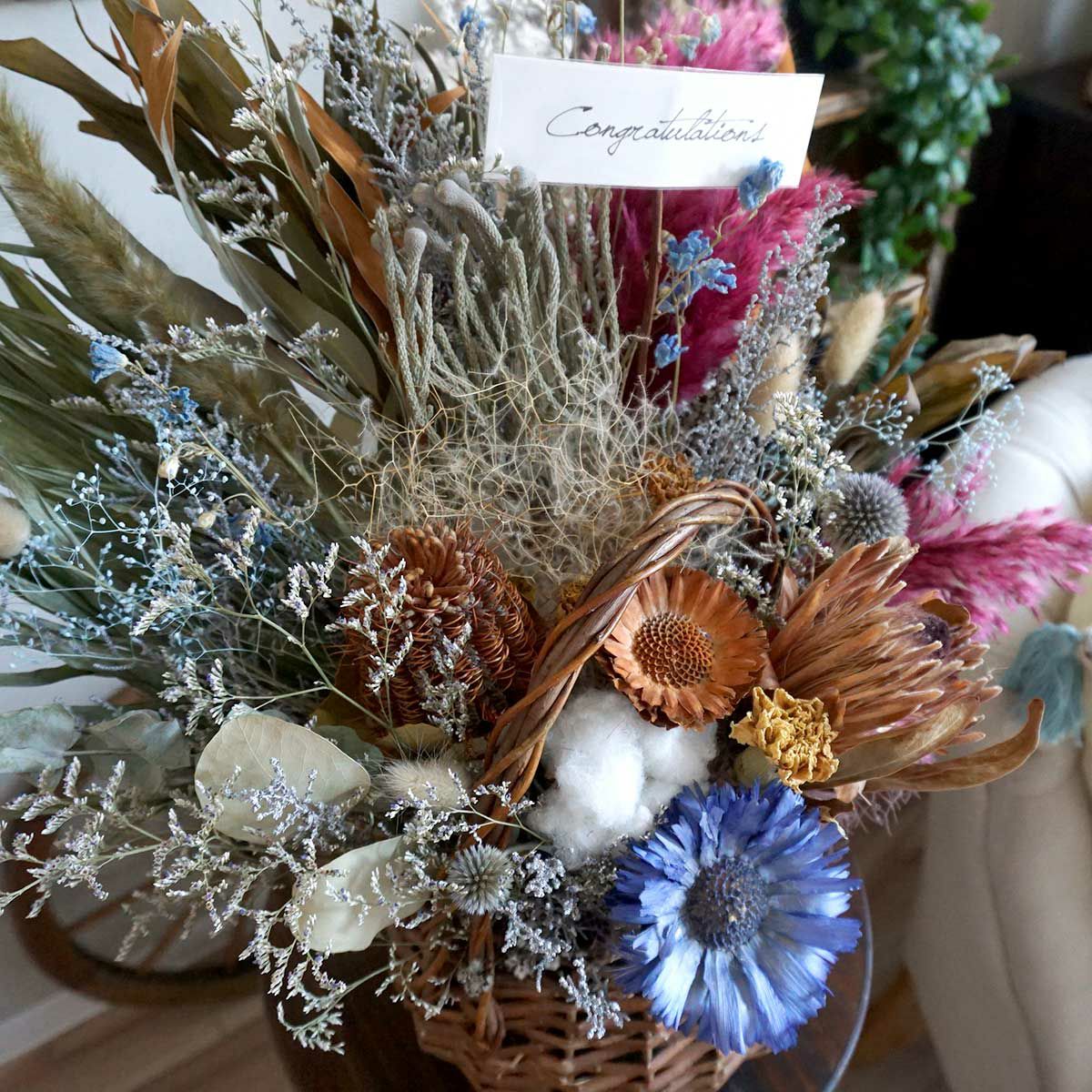 他の画像を見る 【お祝いギフトにおすすめ】置き型ドライフラワーアレンジメント<Sublime-サブライム-> 販売価格 ¥ 12,650 税込 開店祝い・引っ越し祝い・結婚祝い・出産祝いなどにおすすめ!置き型ドライフラワーアレンジメントです。ギフトやちょっとしたプレゼントにもぴったり!誕生日・記念日・結婚祝いにもおすすめ。 詳細を見る お気に入りに登録する