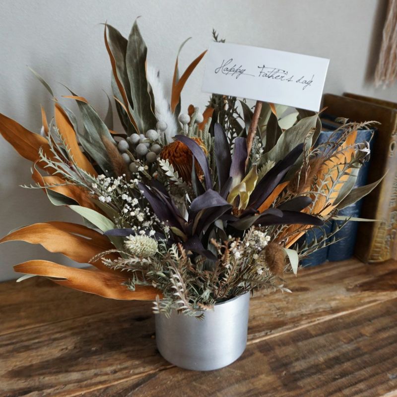 父の日・開店祝い・引っ越し祝い・結婚祝い・出産祝いなどにおすすめ!置き型ドライフラワーアレンジメントです。ギフトやちょっとしたプレゼントにもぴったり!誕生日・記念日・結婚祝いにもおすすめ。