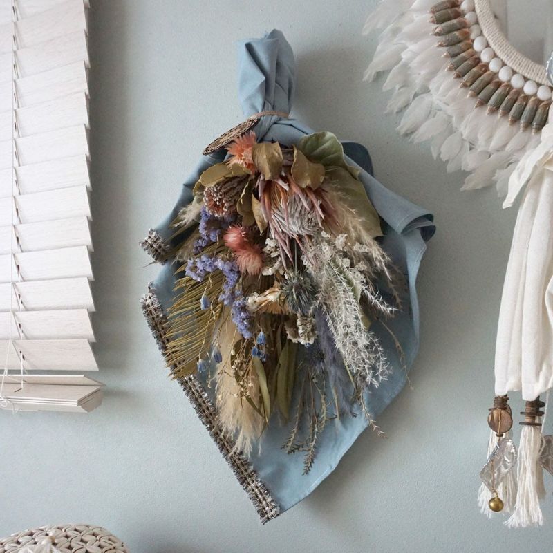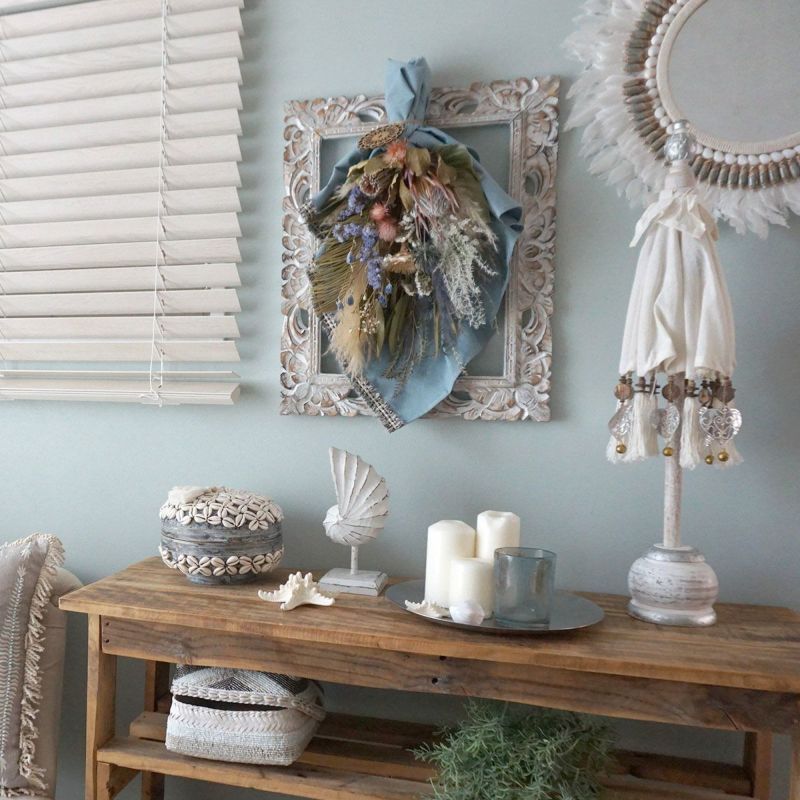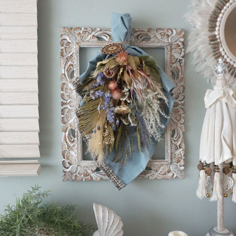 海の中の世界をイメージしたプレゼントやギフトにおすすめのドライフラワースワッグ。アンティークな雰囲気も感じられる大人っぽいスワッグです。誕生日・記念日・結婚祝い・開店祝い・ご自宅のインテリアなどにもおすすめ。