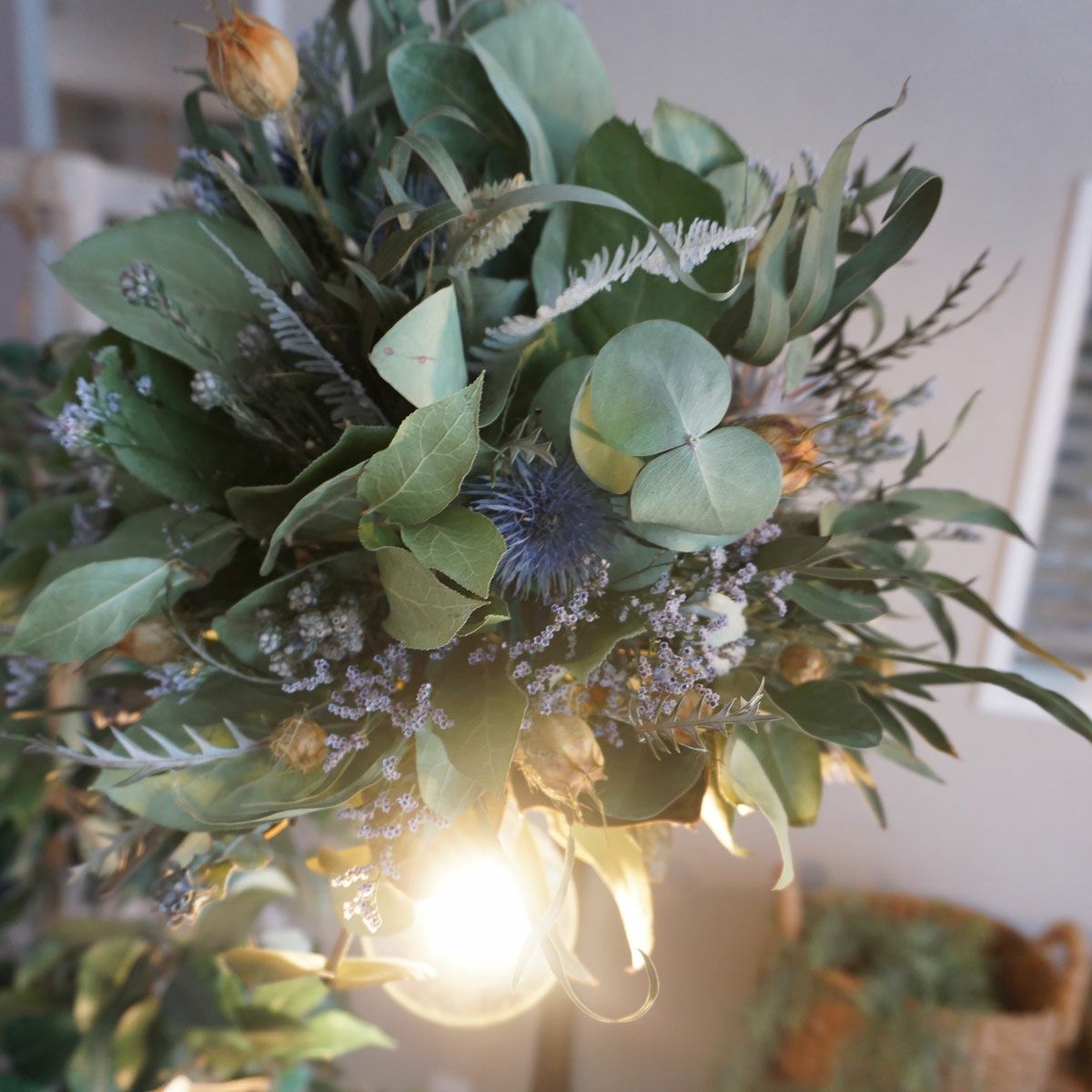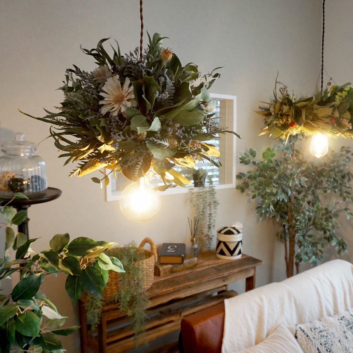 他の画像を見る 【ドライフラワー照明・1灯式ペンダントライト(直径約40cm)】ユーカリなどグリーンミックス<テレサ> 販売価格 ¥ 34,100 税込 サロンやカフェなどの店内装飾・ディスプレイやお部屋のインテリアに。おしゃれなドライフラワーを使ったペンダントライト・照明。開業祝い・開店祝い・新築祝い・プレゼントギフトにもおすすめ。 詳細を見る お気に入りに登録する