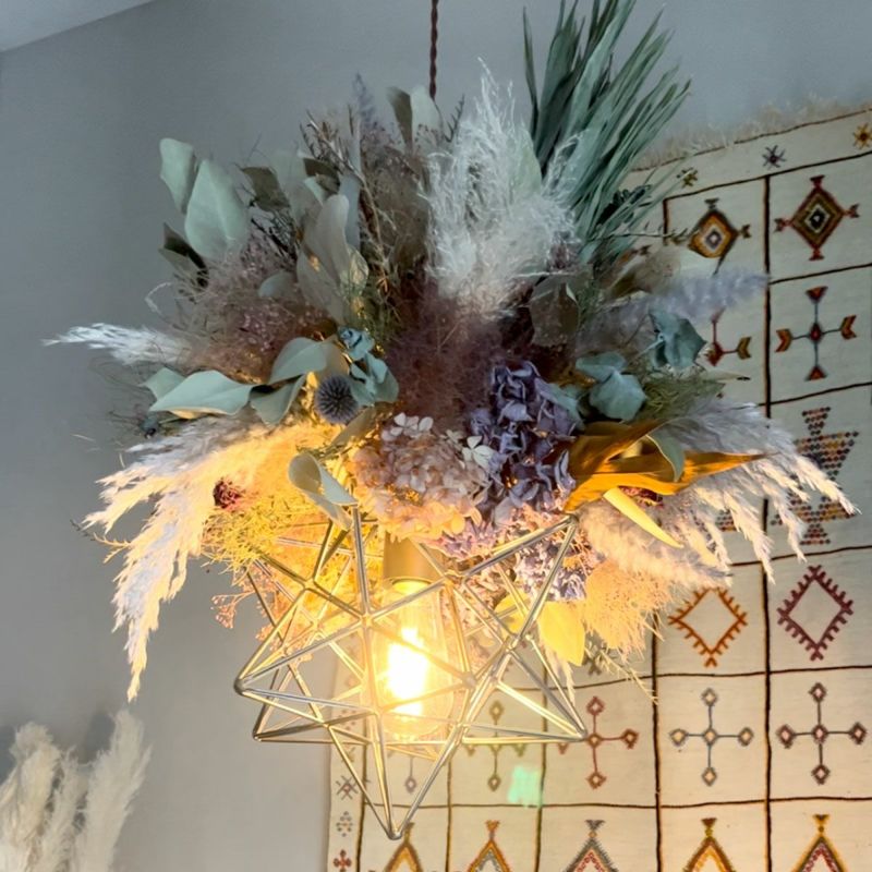 星の形がかわいい照明!サロンやカフェなどの店内装飾・ディスプレイやお部屋のインテリアに。おしゃれなドライフラワーを使ったペンダントライト・照明