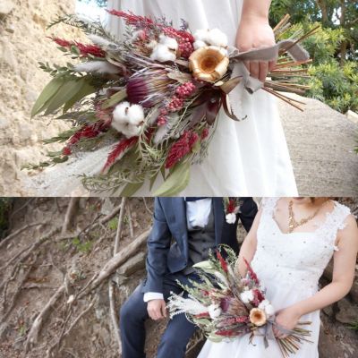 今回、北海道での秋のガーデンでの結婚式のためにブーケ作成を依頼しました。 ガーデンやドレスの画像とともにイメージをお伝えしたところ、ほんの数日でブーケの試作品の画像を送っていただけました。 まさにイメージ通りで、お値段も式場で頼んだ場合の半額でした。ブートニアも新郎のイメージに合わせて、ブーケとはお花の比率を変えて作っていただけました。 当日も秋のガーデンにピッタリで、ドレスともとてもよく合っていて、たくさんの方に素敵なブーケだねと褒めてもらい、自分が褒められているようで嬉しかったです。とても軽いので、式や披露宴でずっと持っていても手が疲れません。 ドライフラワーで長持ちするため、来月に友人が開いてくれる結婚祝いパーティにも持参する予定です。 香りもカモミールのような落ち着く香りがほのかにする程度です。 今回作成を依頼して、非常に満足度が高かったのでぜひ購入をオススメします。 ブルームさん、今回はとても素敵なブーケとブートニアを作成くださり、ありがとうございました!