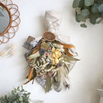 【結婚祝いギフトにおすすめ!】一生に一度の大切なお祝いにドライフラワーを贈ろう!インテリアにもなる・魅力あふれるお祝いのドライフラワー花束<ナチュラルブルー>